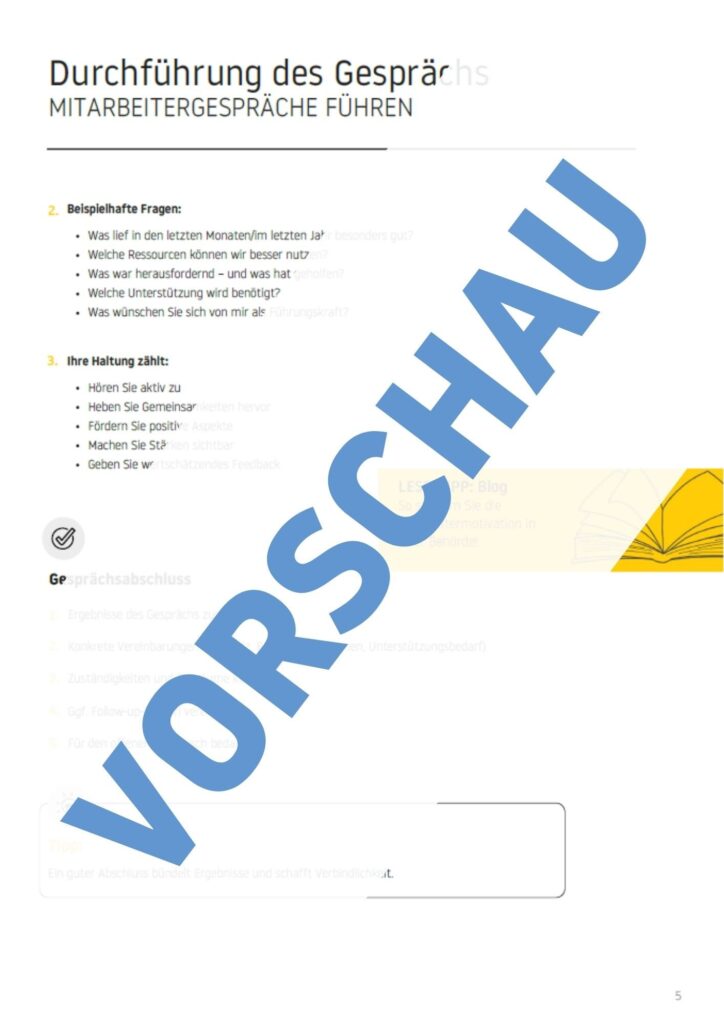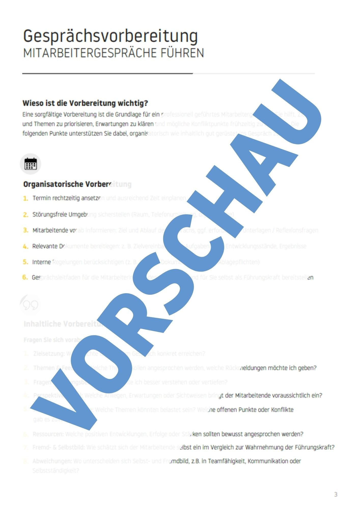 - Sie wissen, wie Sie Mitarbeitergespräche organisatorisch und inhaltlich strukturiert vorbereiten.