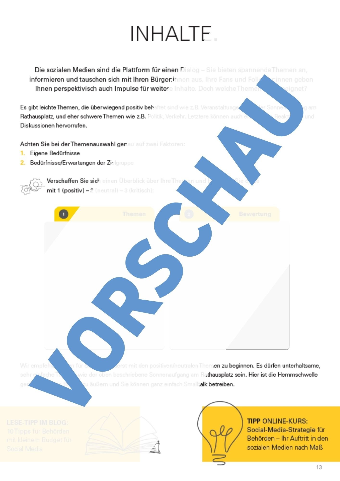 Unser Tipp: Kombinieren Sie das Arbeitsbuch mit unserem Online-Kurs "Social-Media-Strategie für Behörden", um noch mehr Hilfestellungen und Tipps zu erhalten.